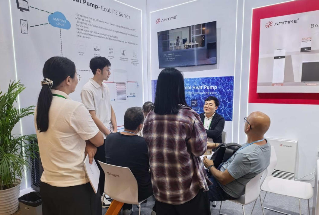 In this dialogue between "Made in China" and the global market, AMITIME, a leading brand in the heating heat pump industry, made a stunning appearance with multiple heat pump products and system-level solutions. Leveraging its self-developed heat pump technology, it became the focal point, with a continuous stream of inquirers visiting its booth.